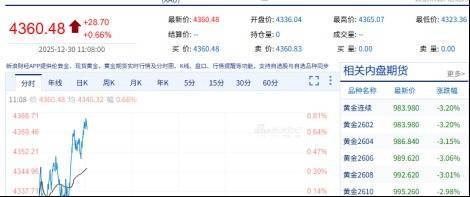 【大河财立方 记者 秦龙】黄金价钱在接连暴涨、屡翻新高后,于2025年12月29日出现大跳水,盘中一度跌至4316好意思元,日内波动超265好意思元。扬弃12月30日11:08,伦敦现货黄金价钱为每盎司4360.48好意思元,较昨日微涨0.66%。