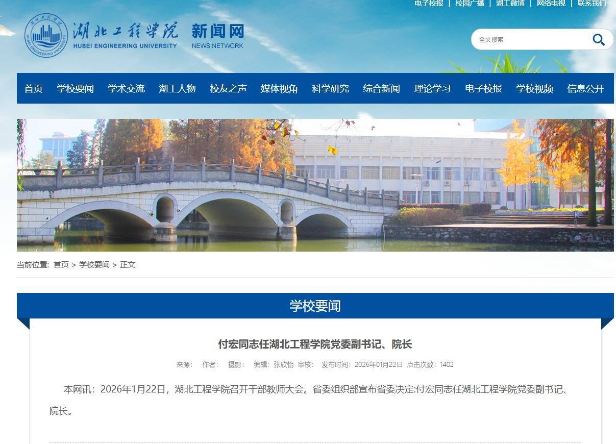 付宏。(图片来自湖北经济学院网站)据湖北工程学院官方网站报说念:1月22日,湖北工程学院召开干部教练大会。省委组织部文告省委决定:付宏同道任湖北工程学院党委副文书、院长。