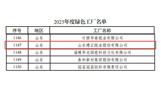 r3月18日,工业和信息化部公布国度级绿色工场名单,山东博汇纸业股份有限公司奏效入选。这一认定,是对企业经久坚合手生态优先、践行双碳战术、打造绿色制造体系的泰斗招供,彰显山东博汇纸业在绿色低碳限制的中枢竞争力与行业引颈力。